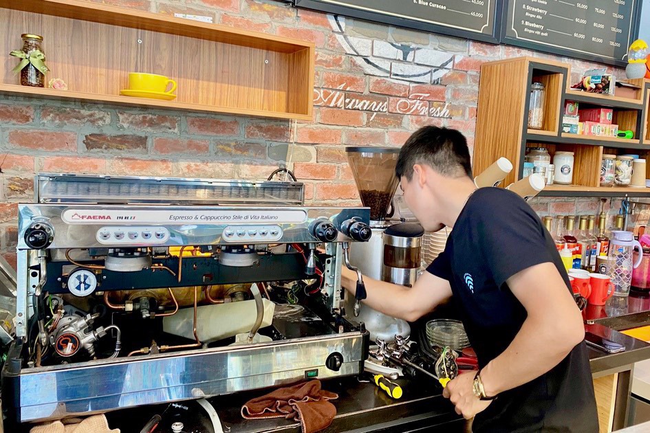 Lắp đặt bàn giao combo máy pha cà phê Faema E98 và Máy xay tự động Italy đến chị Hương tại Cát Linh, Hà Nội